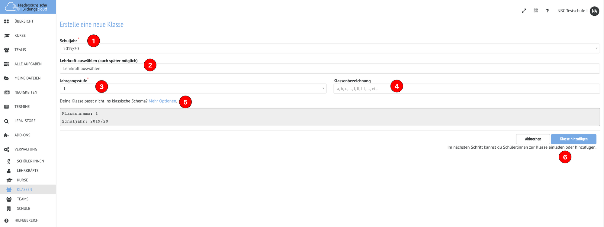 3. Die Schaltfläche "Klasse hinzufügen" speichert die eingegebenen Daten und legt nun die Klasse im System an.