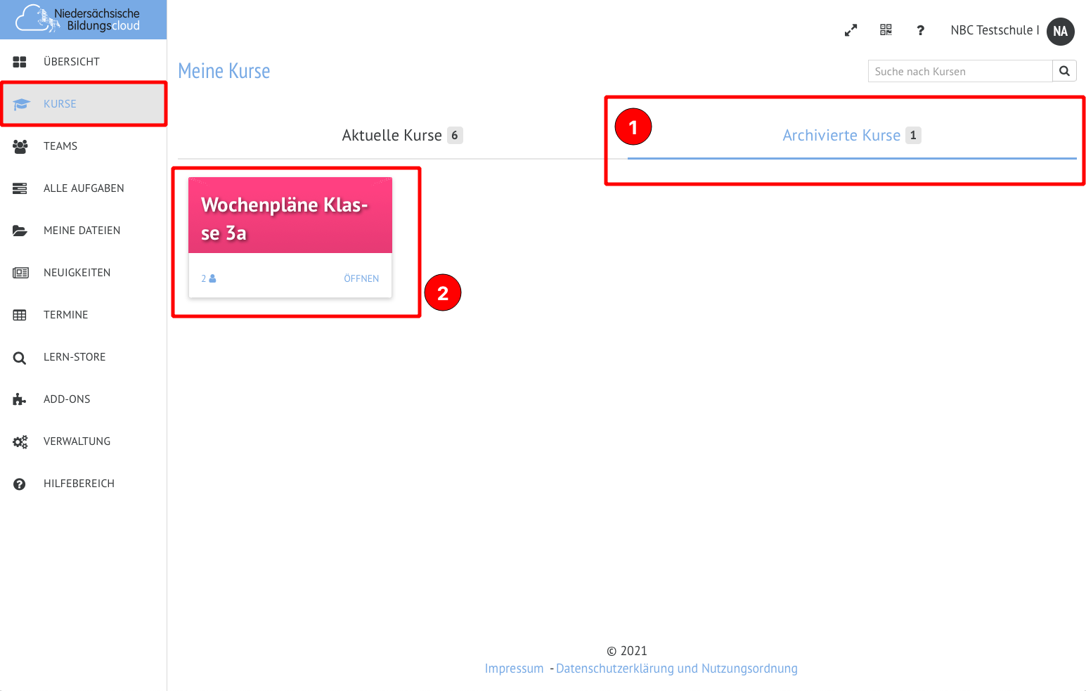 Ihre Kurse aus dem vorigem Schuljahr finden Sie nach dem Schuljahreswechsel im Bereich Kurse unter "Archivierte Kurse" wieder.