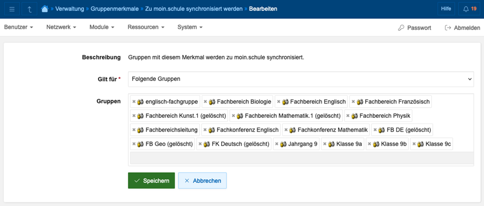 - Bearbeiten anklicken und das Gruppenmerkmal den zu synchronisierenden Gruppen zuweisen.