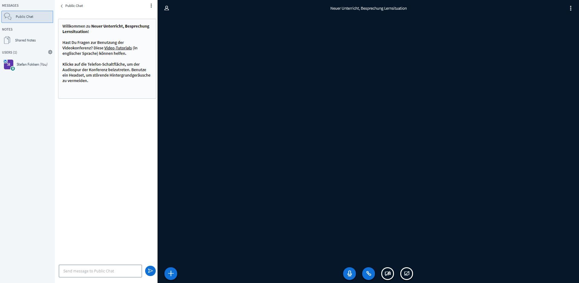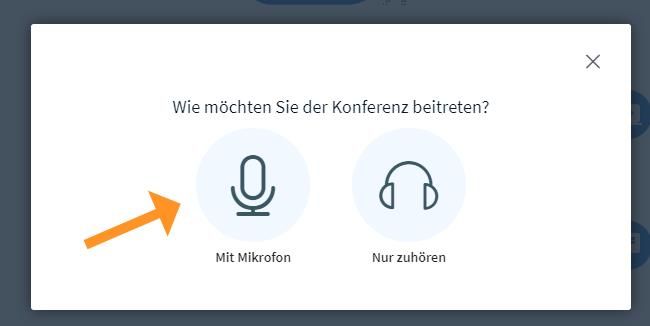 Der Konferenzraum öffnet sich. Audio ist aktiviert.