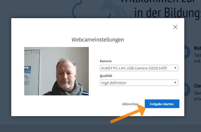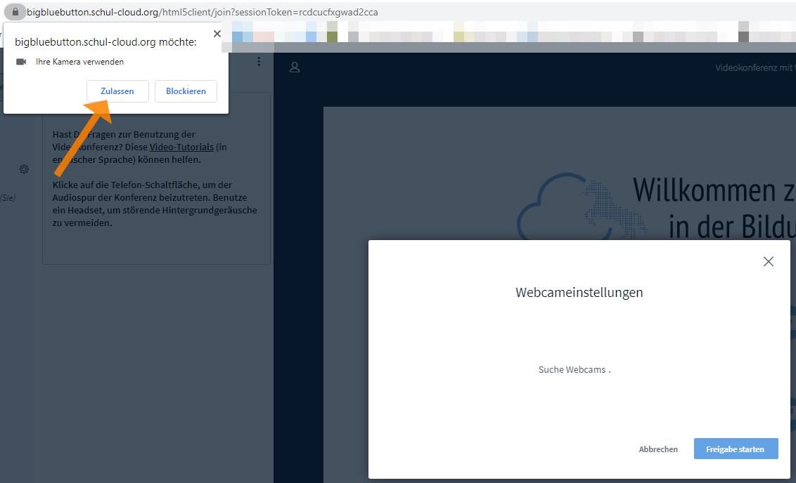 Bestätigung der Sicherheitsabfrage für die Nutzung der Webcam