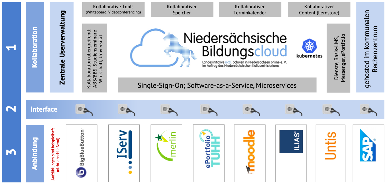 "Darüber hinaus wird entgegen der bisherigen Planung der bestehende Prototyp der Niedersächsischen Bildungscloud ab Mai dieses Jahres flächendeckend angeboten. Sie kann nicht nur als Lernmanagement-System genutzt werden, in dem Materialien, Termine und Dateien bereitgestellt werden, sondern ermöglicht auch die schulbezogene und schulübergreifende Kommunikation und Zusammenarbeit miteinander aus der Ferne. Hier wollen wir insbesondere die einfach zu bedienenden Funktionen, wie den Messenger, die Lerngruppeneinrichtung, den Datenaustausch und die Datenablage schneller verfügbar machen." (Aus der Rede des Niedersächsischen Kultusministers Grant Hendrik Tonne zu TOP 6 der Landtagssitzung am 25.03.2020 „Welche Auswirkungen hat das Corona-Virus auf Niedersachsen?“, Quelle: www.mk.niedersachsen.de)