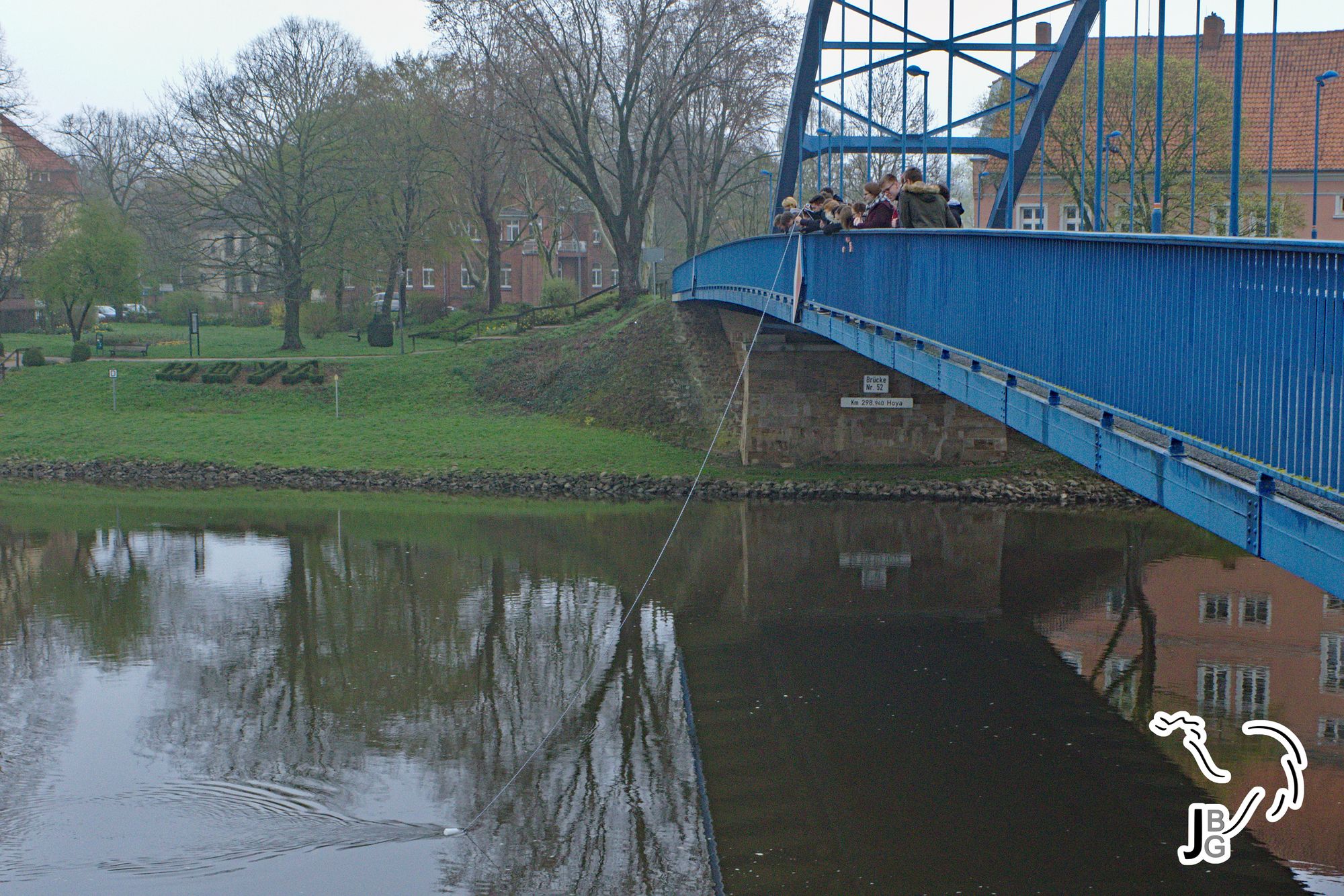 Erste Tests der Arbeitsmethoden und örtlichen Gegebenheiten mit Lernenden direkt an der Weser.