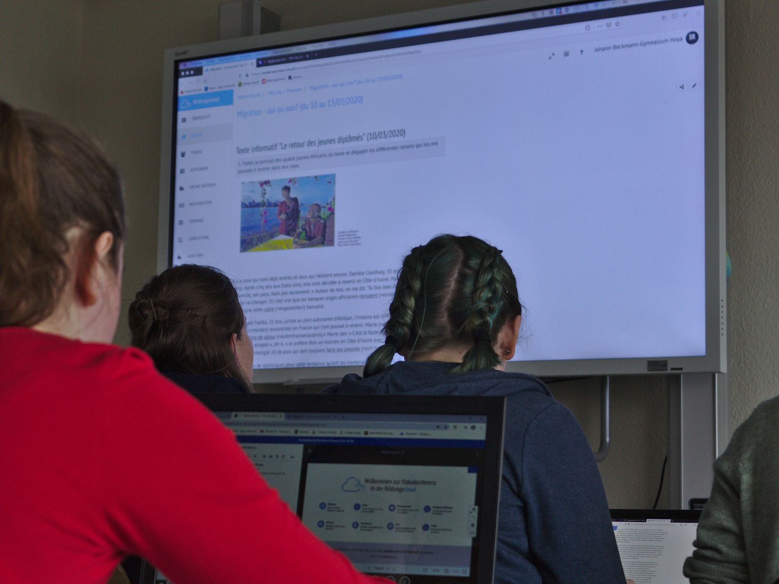 „Eines der Projektziele der Bildungscloud ist die Entwicklung von orts- und zeitunabhängigen Lehr- und Lernarrangements“, erklärt Herr Burrichter. „Mit der Bildungscloud können wir auch über große Entfernungen gemeinsam an einer Aufgabe arbeiten.“ Schließlich hat das JBG schon mit dem Gymnasium Ernestinum in Rinteln an einem gemeinsamen Projekt in der Niedersächsischen Bildungscloud gearbeitet und diese Erfahrungen fließen nun in die aktuelle Situation mit ein.