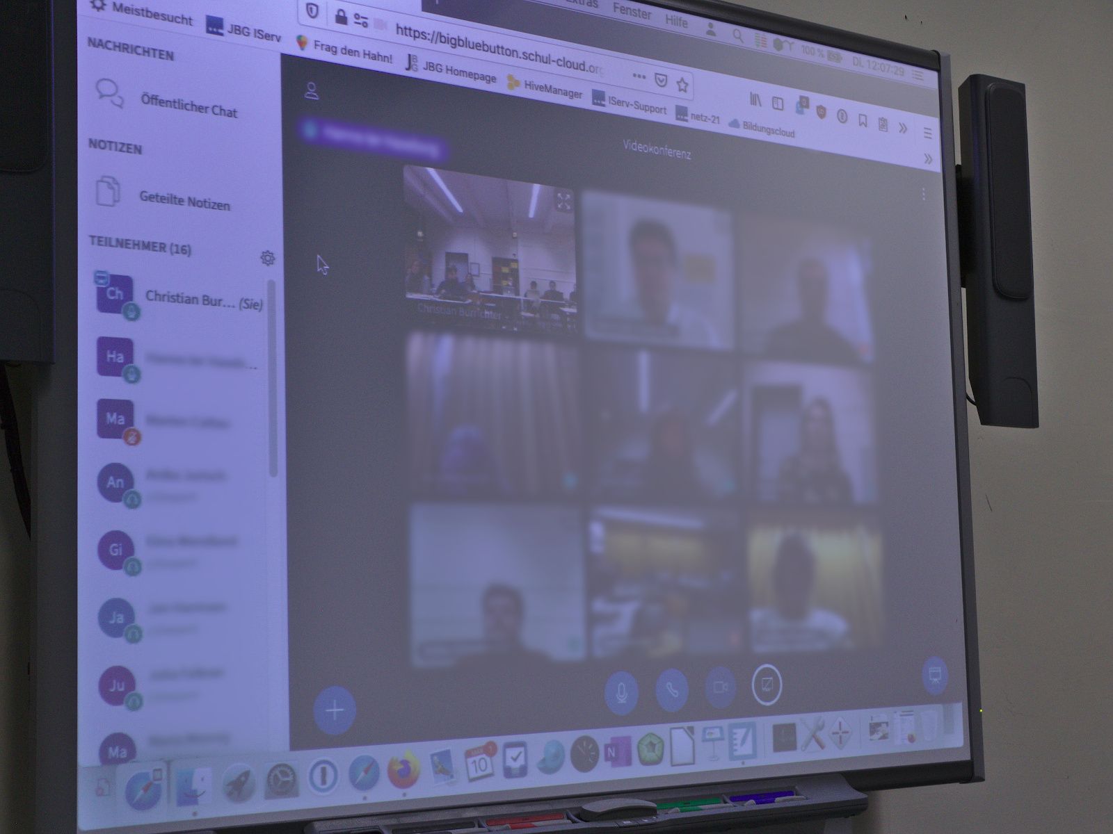 Während die Schüler/-innen privat über ihr Smartphone oder Telefon mit den in Quarantäne befindlichen Freunden Kontakt halten, erfolgt das für den Unterricht über Videokonferenzen und schulinterne Messenger. Eine JBG-Schülerin konnte ihren 18. Geburtstag wegen der Quarantäne nicht mit ihren Freunden feiern. Spontan gratulierten ihr aber die Kursteilnehmer über die Videokonferenz mit einem Ständchen zum Geburtstag, als sie sich mit in den Unterricht schaltete. „Ich habe mich total darüber gefreut und fand es superschön, dass meine Mitschüler/-innen sowie meine Lehrerin an mich gedacht haben. Es ist super, dass uns durch die Videokonferenz ermöglicht wird, den Unterricht zu verfolgen und mitzugestalten.“