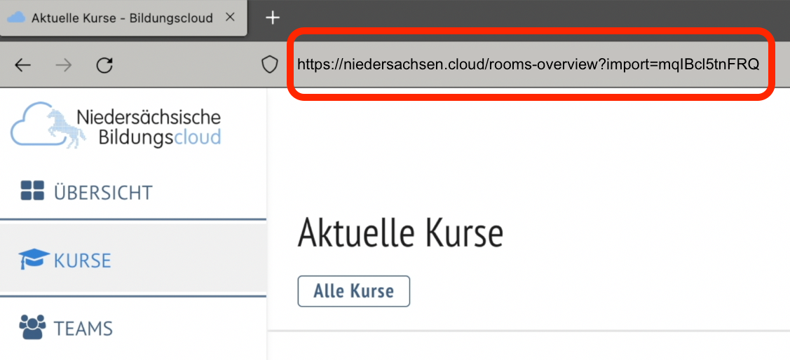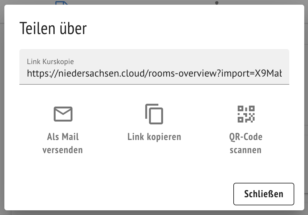 Nach Anmeldung des Adressaten bzw. der Adressatin in der NBC kann der Link oder der QR-Code genutzt werden, um den bereitgestellten Inhalt über die Adressleiste des Browsers im Kursbereich der zweiten Lehrkraft zu integrieren.