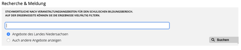 Themen wie „Kollaboratives Arbeiten - auch schulübergreifend“, „Arbeiten mit dem adaptiven Mathematikprogramm bettermarks“, „Einstieg in die Niedersächsische Bildungscloud - Schwerpunkt Primar- und Förderbereich“ oder auch „Unterricht digital gestalten“ und sämtliche Schulungen bezüglich des Online-Diagnose-Tools Classtime sind dank der detaillierten Stichwortsuche in den Veranstaltungsangeboten für den schulischen Bildungsbereich schnell auffindbar.