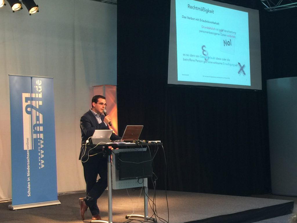 Das Thema Datenschutz spielt bei der Entwicklung der Niedersächsischen Bildungscloud eine große Rolle. Herrn D. Sandvoß ist es gelungen, dieses für viele doch sehr komplexe Thema begreiflich und handhabbar darzustellen.