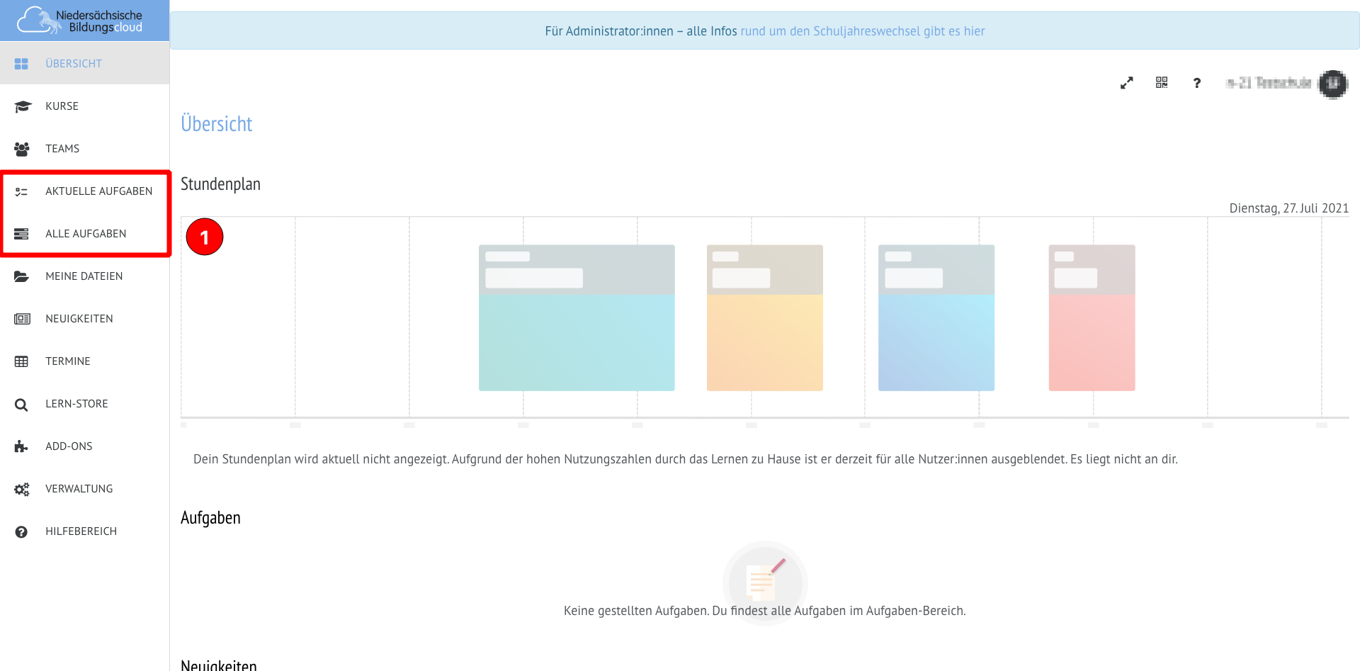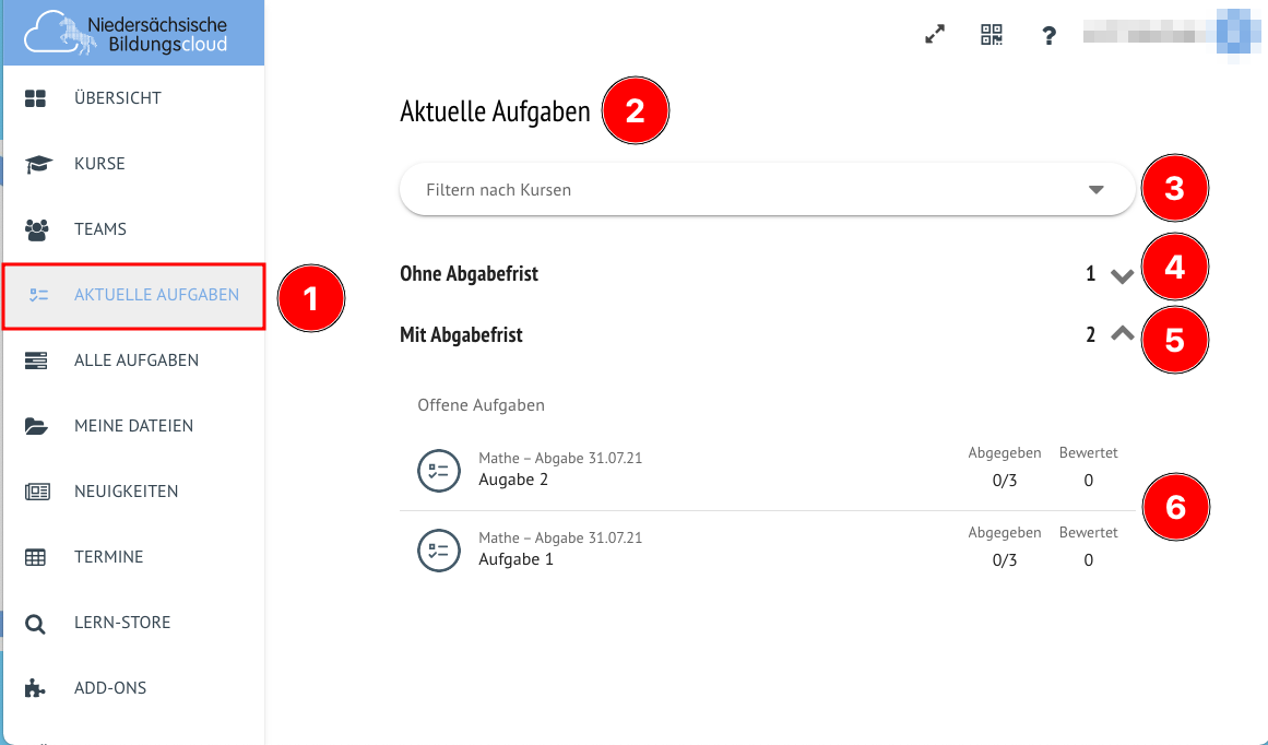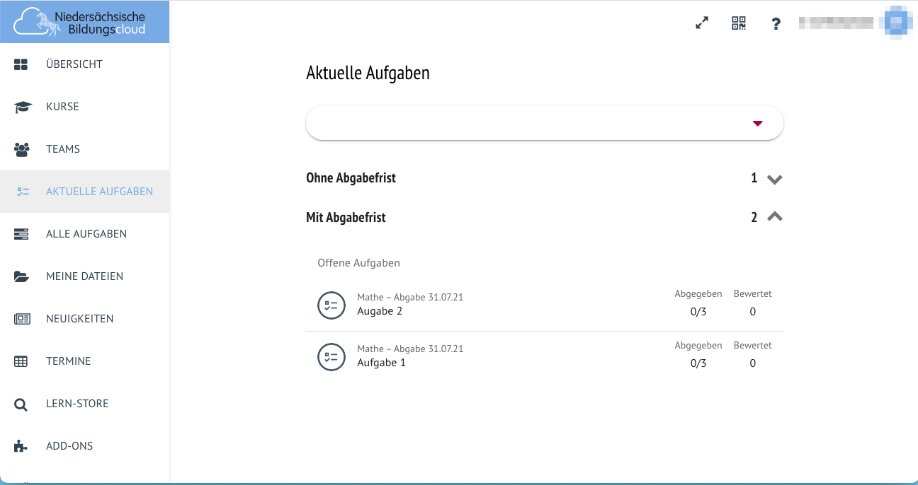 Release 26.6 - Neue Aufgaben -Ansicht in der Niedersächsischen Bildungscloud