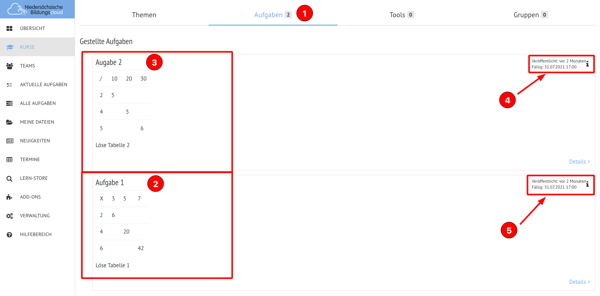 Angeregt durch Interviews und Befragungen von Lehrkräften und Schüler*innen wurde dieser Bereich für die Aufgaben in der Niedersächsischen Bildungscloud geschaffen.