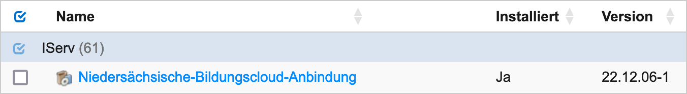 In der Weboberfläche des schuleigenen IServ können Administrator:innen mit wenigen Mausklicks die "Anbindung an die Niedersächsische Bildungscloud" herstellen. Dazu muss in der Paketverwaltung zunächst das entsprechende Paket installiert werden.