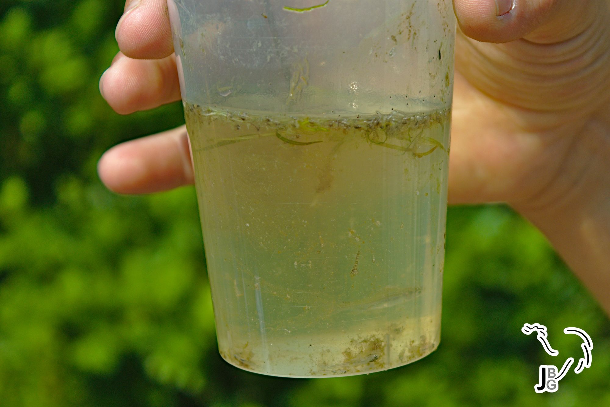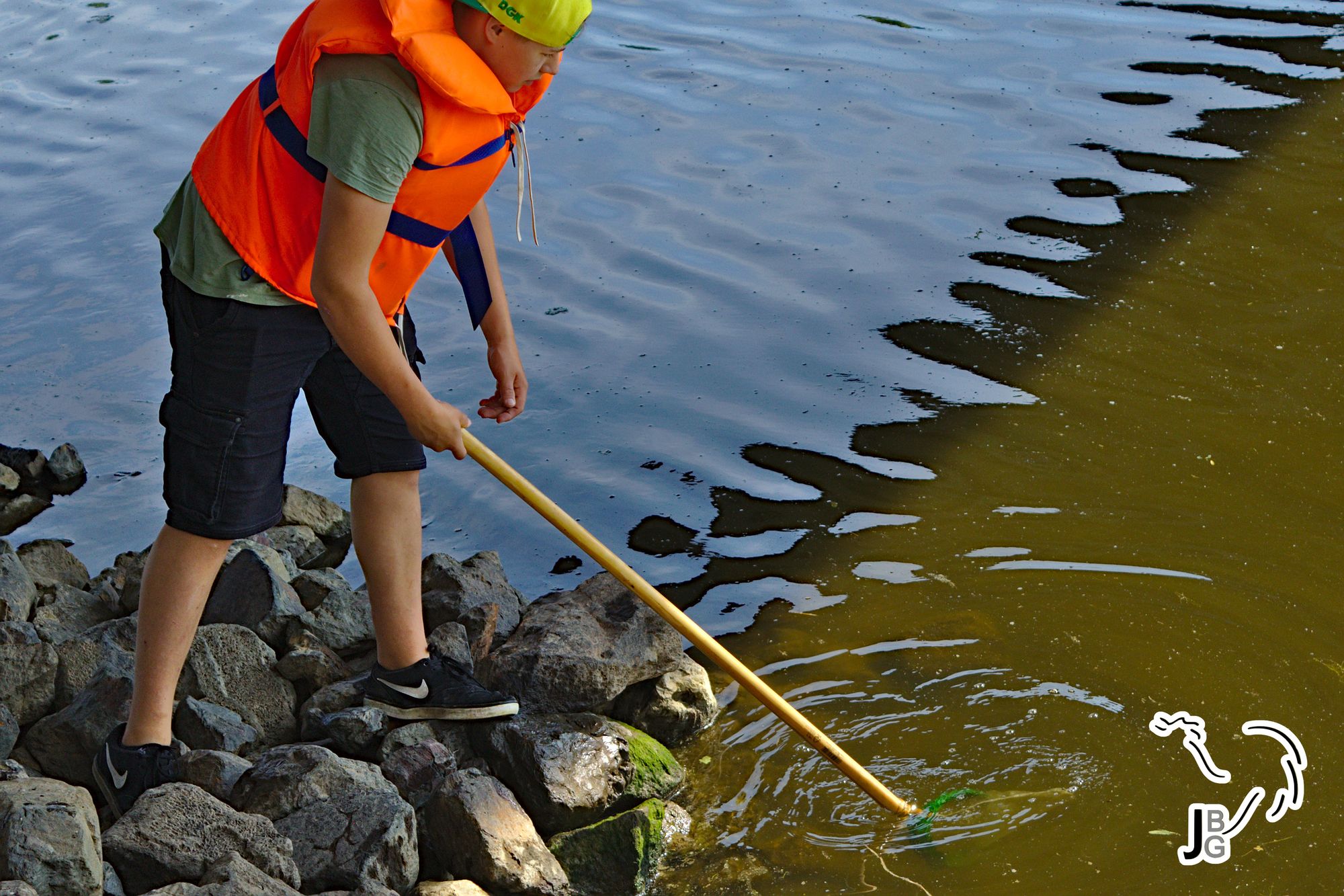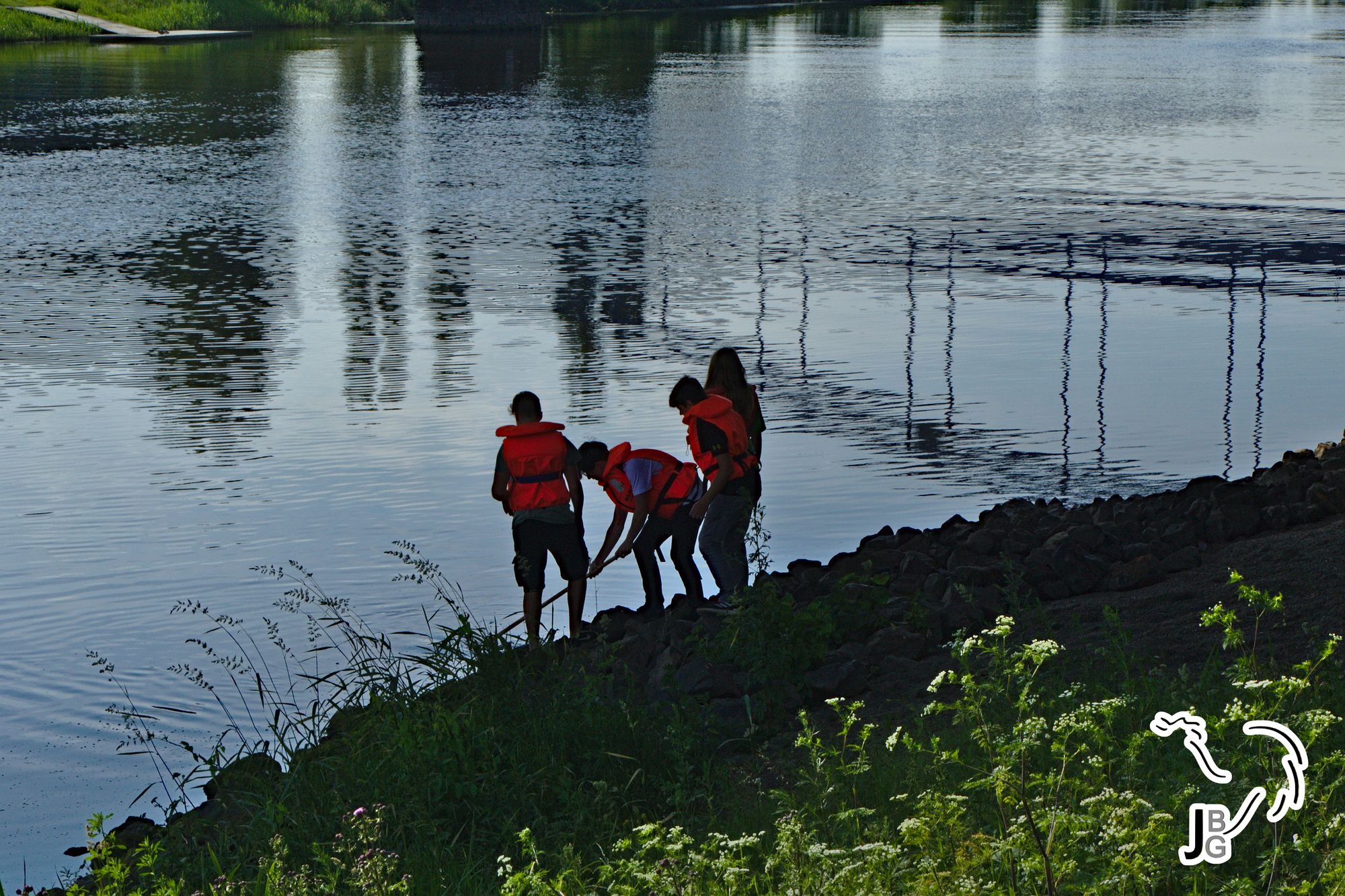 Rettungswesten, damit Schülerinnen und Schüler auch in unmittelbarer Nähe zum Wasser arbeiten dürfen, konnten wir über eine Kooperation mit einer DLRG-Ortsgruppe nutzen. Aus diesem ufernahen Bereich wurde Substrat für biologische Untersuchungen gesammelt. Die biologische Untersuchung begann mit dem Auszählen unterschiedlicher Arten sowie deren Bestimmung nach einfachen Merkmalen.