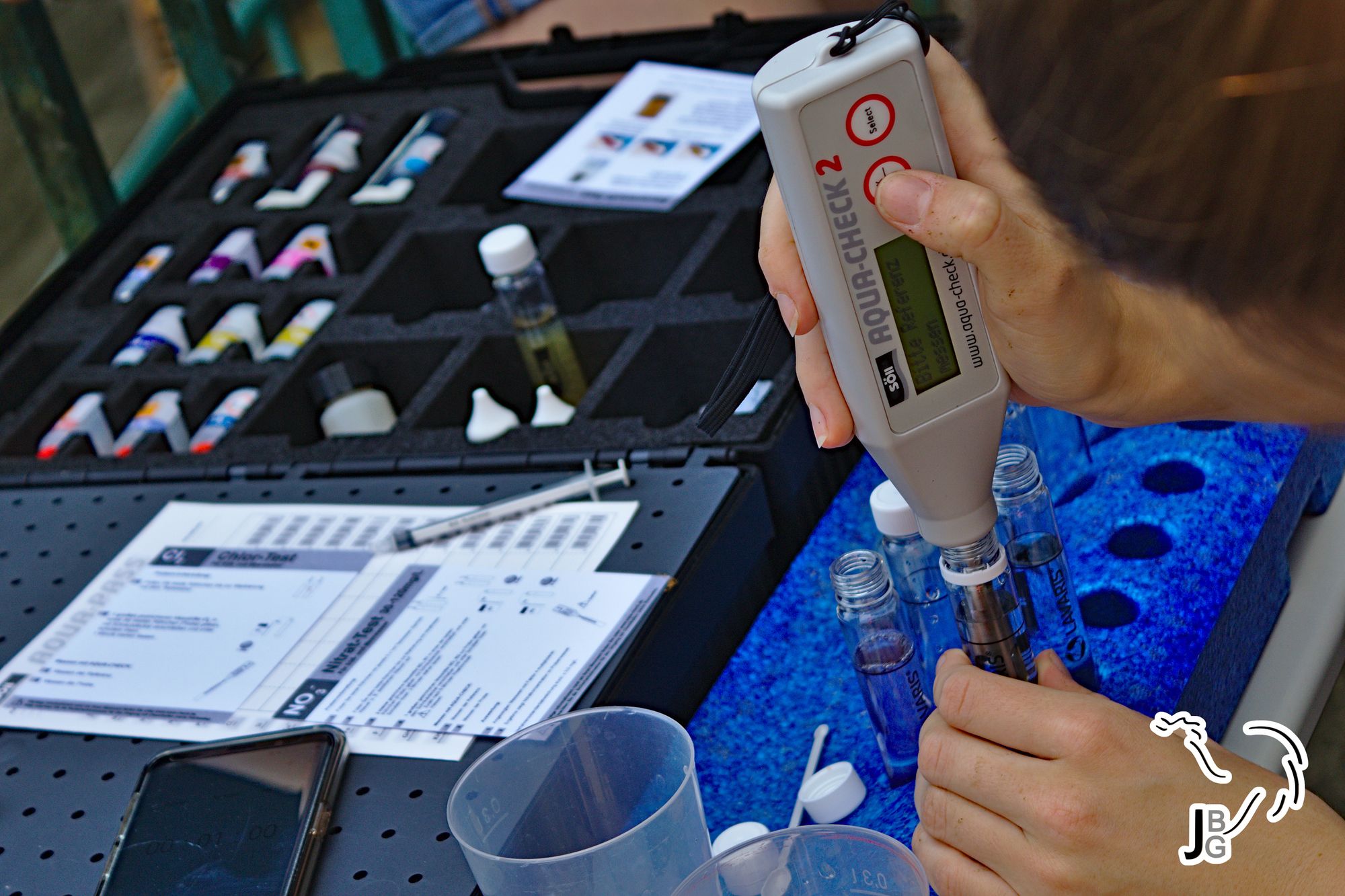 In Kooperation mit dem lokalen Naturschutzverein Weseraue konnte ein digitales Photometer verwendet werden, mit dem auch die Untersuchung zahlreicher weiterer Wasserparameter möglich wurde. Die Bedienung ist auch für Schülerinnen und Schüler jüngerer Jahrgangsstufen zugänglich: Sehr einfach führt ein Menü durch alle notwendigen Arbeitsschritte und zeigt abschließend den Messwert an.