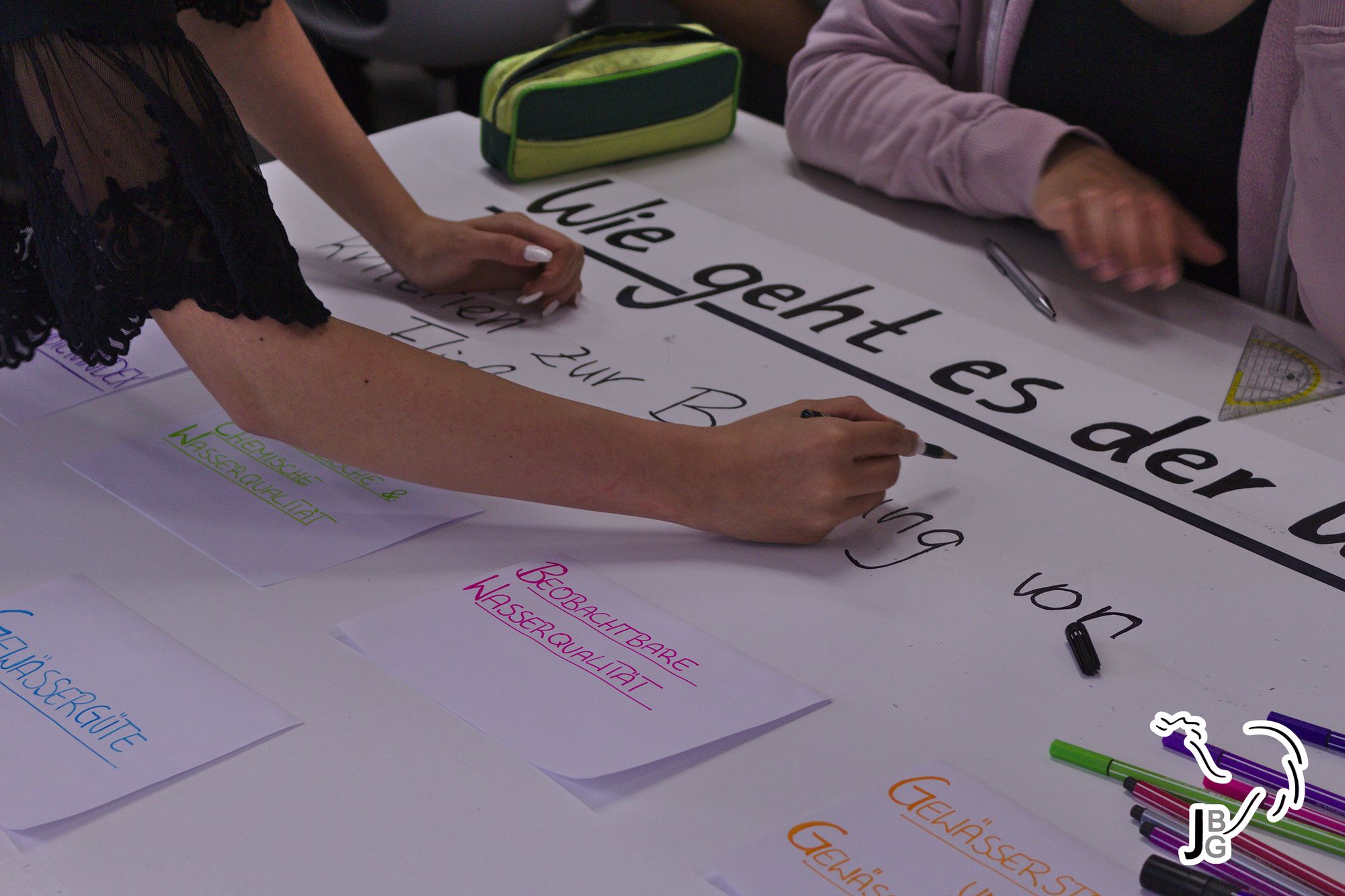 Die Schülerinnen und Schüler sicherten ihre Messwerte und Untersuchungsergebnisse arbeitsteilig zuerst auf Plakaten, da in der schulweiten Projektwoche nicht genügend schuleigene Endgeräte für die Dateneingabe vor Ort zur Verfügung standen. In der Schule wurden die so gesicherten Daten gemeinsam überprüft und in die NBC übertragen.
