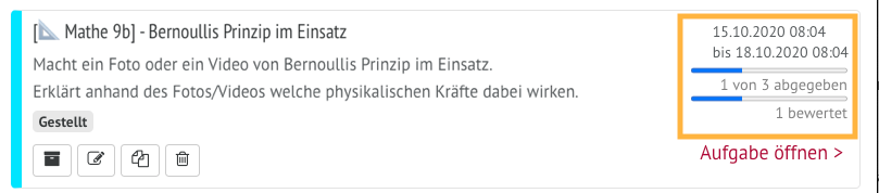 Abgaben der Schüler:innen und auch der Stand der eigenen Bewertungen werden nun auch grafisch angezeigt.