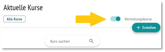 Ein Schalter für die zusätzliche Anzeige von Vertretungskursen von Lehrkräften wurde hinzugefügt. Vertretungskurse sind standardmäßig ausgeblendet und können über den Schalter angezeigt werden. Wenn sie angezeigt werden, können sie nicht verschoben werden.
