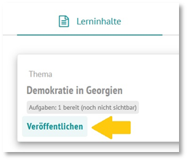 Nach dem Klicken auf "Veröffentlichen" einer Aufgabe in der Listenansicht des Kurses, ändert sich der Text auf dem Button der Aufgabe korrekterweise zu "Abschließen".