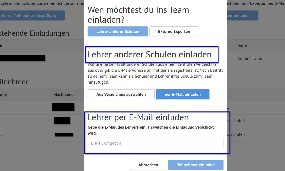 Wie Sie Kolleginnen und Kollegen aus der eigenen Schule in ein Team einladen, sehen Sie hier: