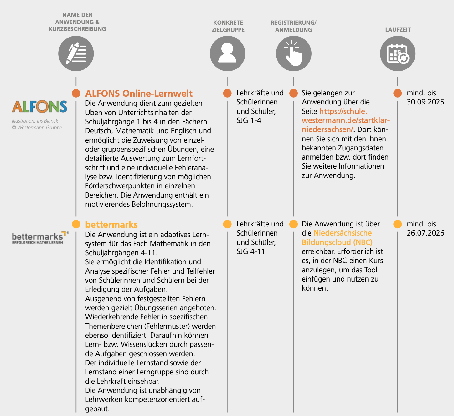 Hervorzuheben ist die Anwendung bettermarks, die bereits in die NBC tiefenintegriert wurde. Langfristig besteht das Ziel, die aufgeführten Programme auch über die NBC verfügbar zu machen.