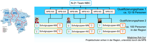 In der zweiten Qualifizierungsphase sollen die MPB zusammen mit einem n-21-Teammitglied die Schulgruppen der NBC in regionalen Fortbildungen zur Nutzung schulen.